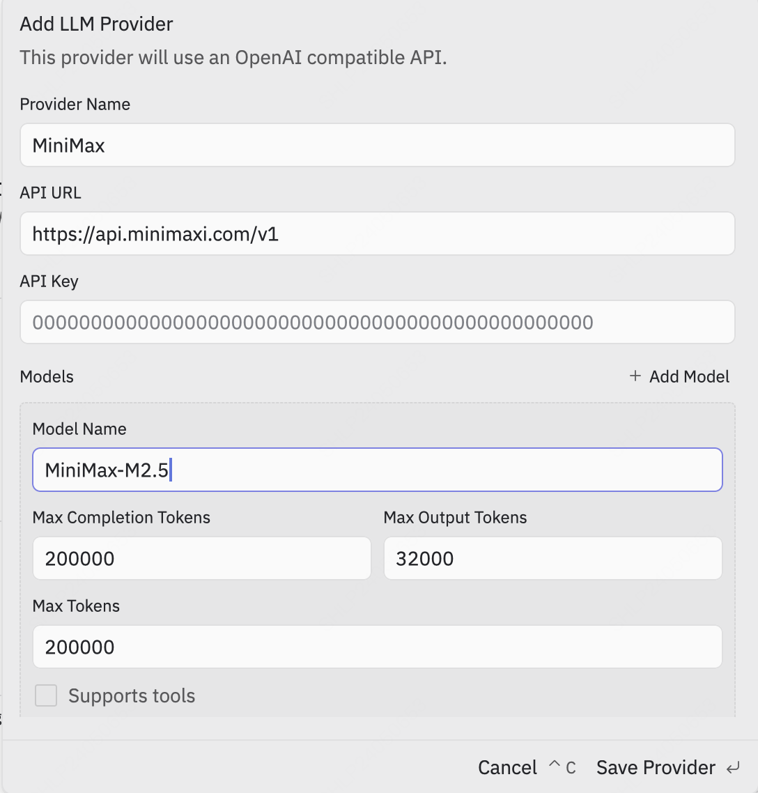 添加 LLM Provider